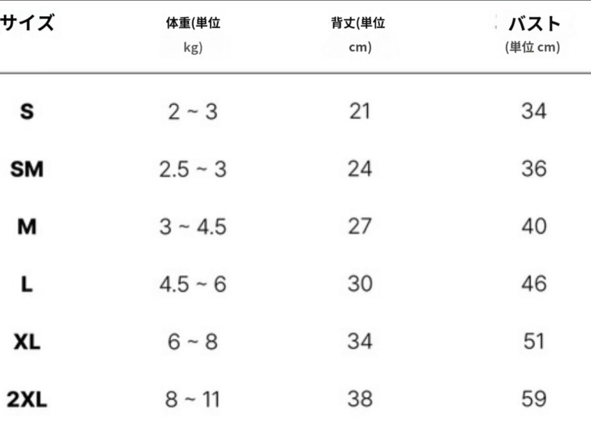 わんちゃんの胸囲寸法より+2〜3cmのお洋服のサイズを選ばれるのをお勧めします。