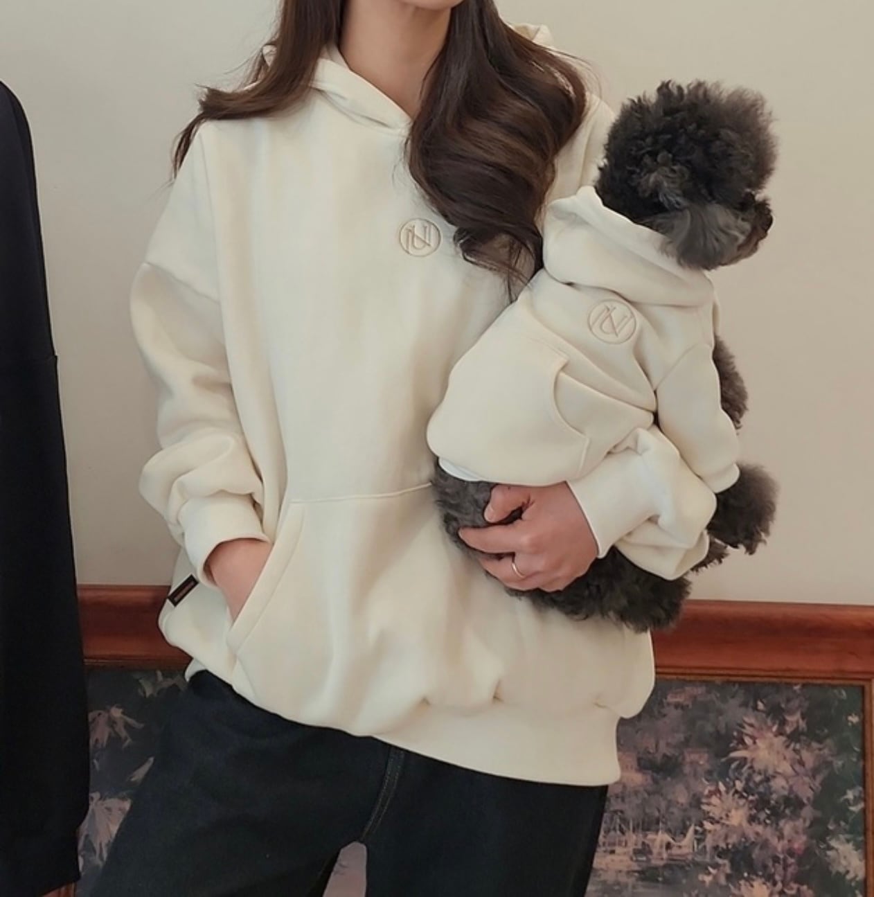 飼い主さん用のフーディとお揃いコーデで